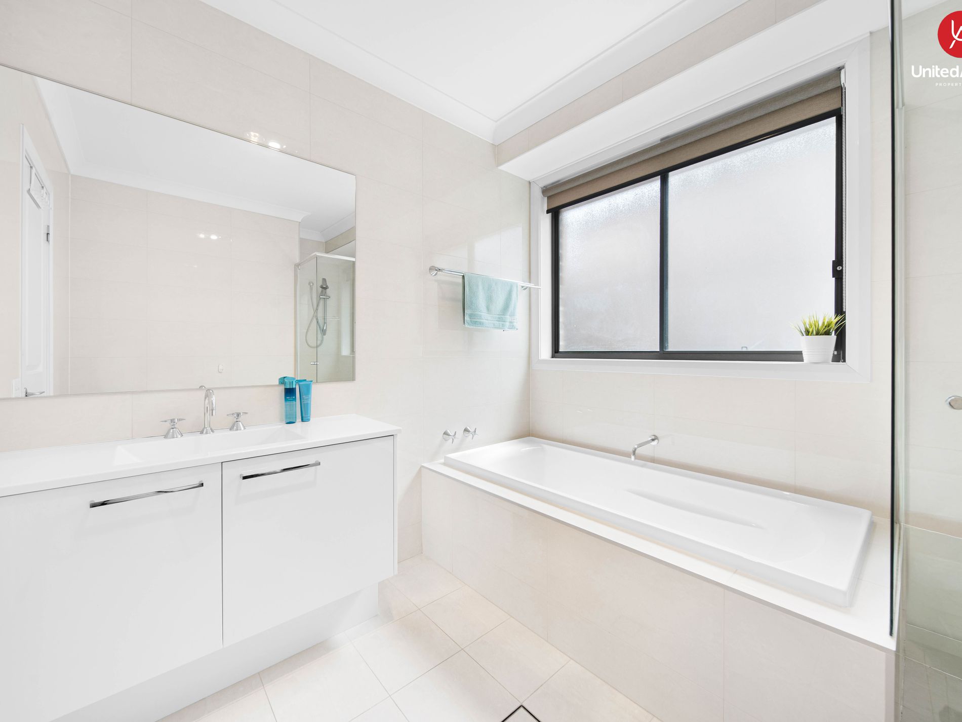 • Two bathrooms with floor-to-ceiling tiles