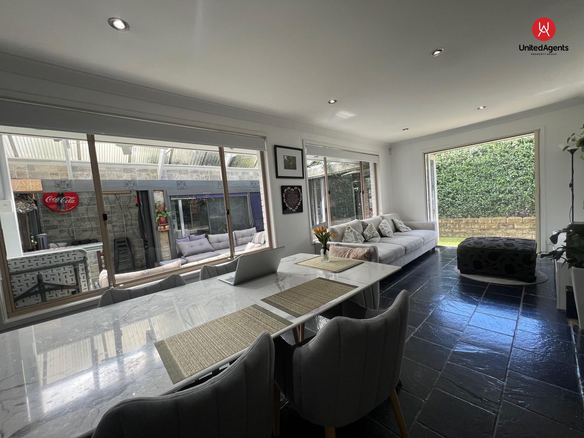 - Open-plan living and dining area
