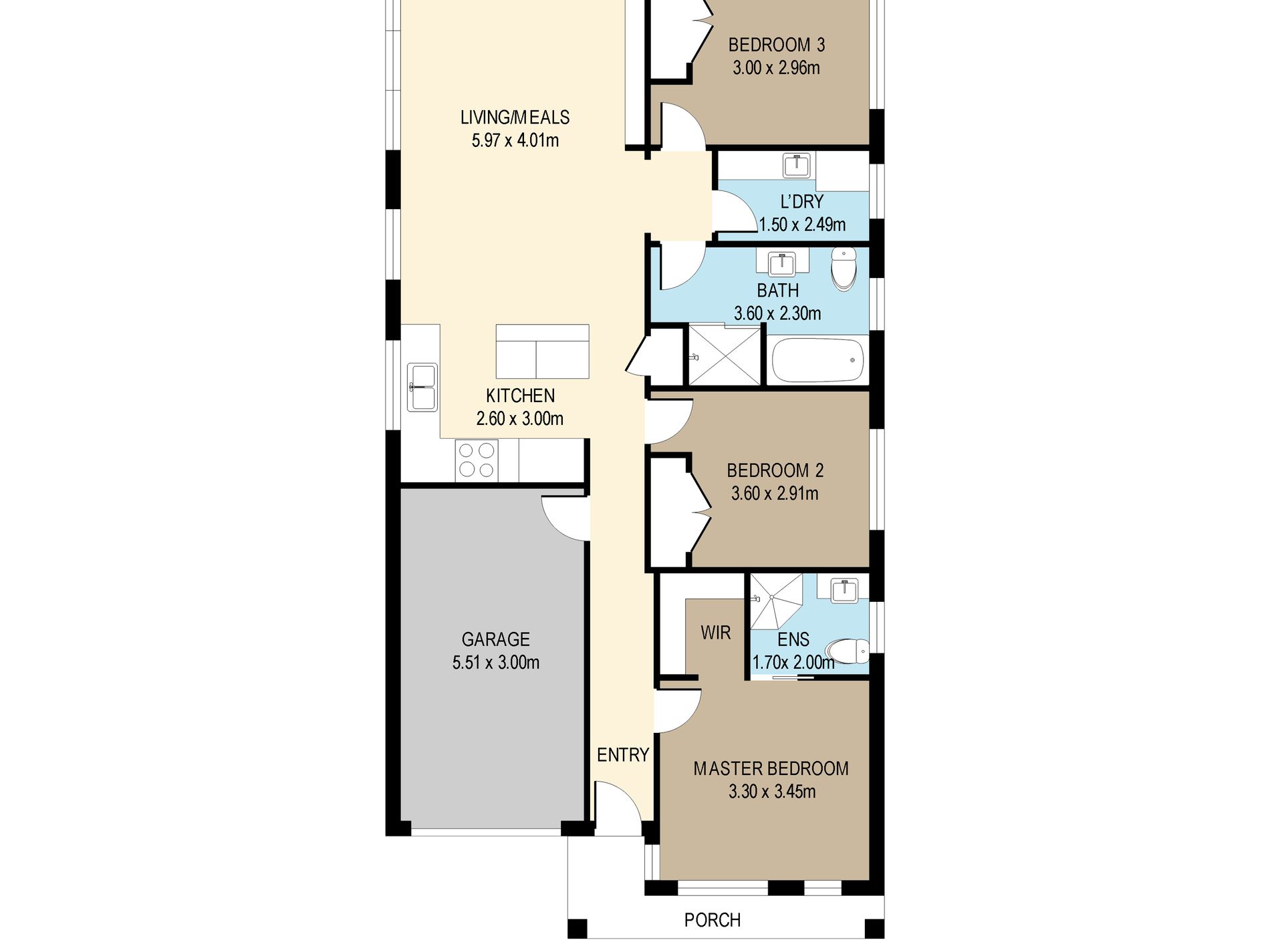 - 3 generous sized bedrooms all with built in robes. Main bedroom features a walk in robe & ensuite.